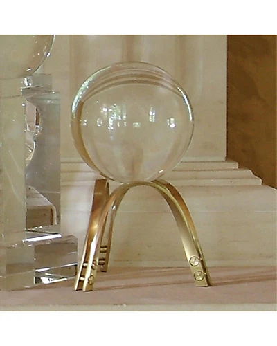 - Design details: Finished in brass, the modern architectural arches create the perfect platform to display a 5″Dia. Crystal Sphere, included.