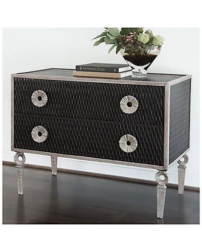 - Design details: The Artisan Chest is solid hand carved wood with hand forged iron frame and details. Two drawers.