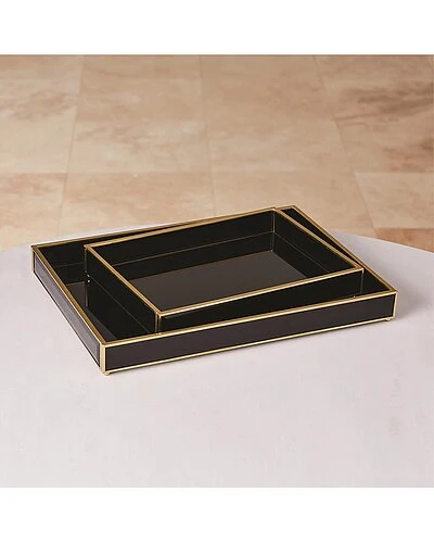 - Design details: the beveled black glass trays features a sleek brass finished trim. available in two sizes.