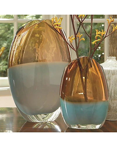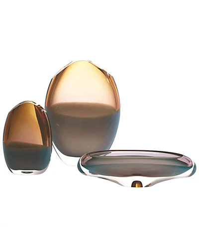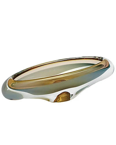 - Design details: All curved lines and gleaming edges, this exquisite Polish art glass bowl is an optical feast. The interior bottom portion is a pale pistachio color, and the top edge is a subtle amber- forming a beautiful color reaction where the colors merge. The thick “ice” base gives the Canoe Bowl extra weight and presence, as it reflects the radiance of all surrounding light sources.