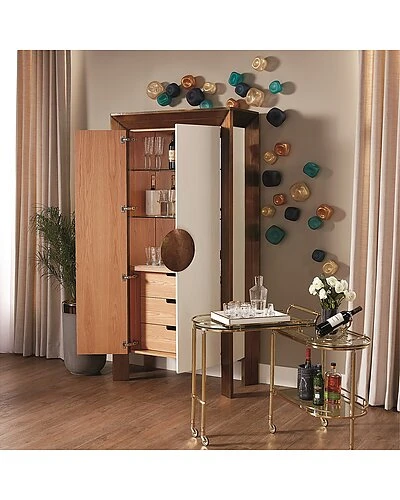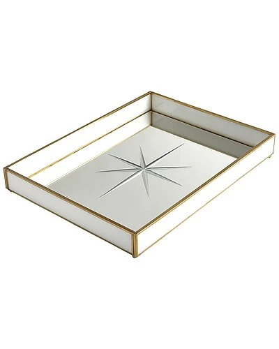 - Design details: each tray has a white glass outer frame, a compass rose etched on the underside of the glass with a silver finish and brass fittings.