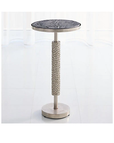 - Design details: Magnificently textured with a pebble like pattern. Iron base with antique nickel finish and a grey marble top.