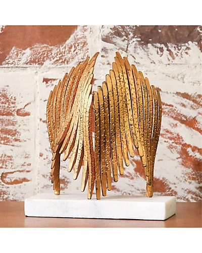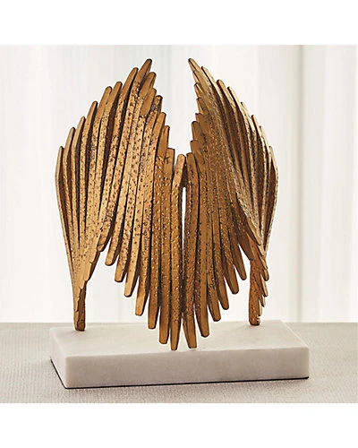 - Design details: Robust yet delicately constructed, their iron Icarus winged sculpture sits on a block of white marble. Due to the item being made by hand, sizes may vary. Available in gold leaf and torched iron finishes.