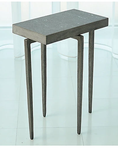 - Design details: Instead of lending support at the four corners of the table, Laforge ‘s tapered legs have been repositioned to the middle of the tabletop’s side and end panels. How beautiful! Laforge is available in three versions: Natural Iron base with Flamed Granite top; Antique Gold base with White Marble top; Black base with Oxidized Copper top.