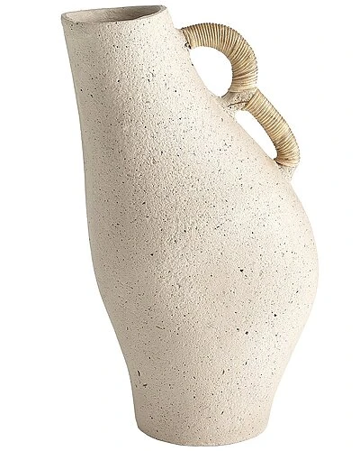 - Design details: the leaning vase is made of ecomix and has rattan wrapped handles.