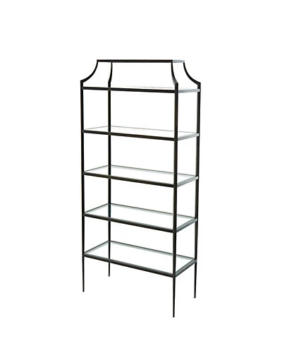 - Design details: Lescot etagere has a Mansard inspired top detail made of bronze finished metal with tempered glass shelves and adjustable feet.
