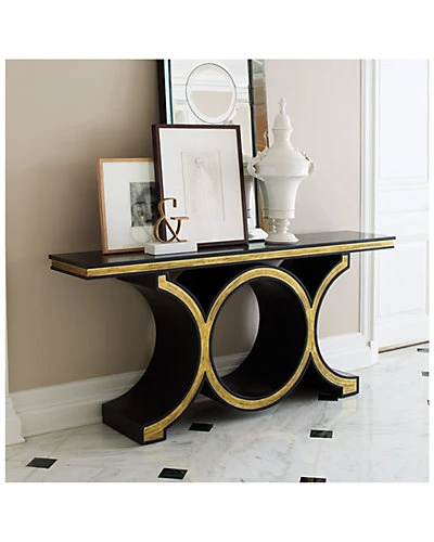 - Design details: This stunning console would mix in beautifully with a traditional or contemporary environment. It is finished in satin black lacquer and gold painted details.