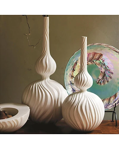 - Design details: Swirled ridges give texture to this solid colored ceramic piece. their snow white Magura Vase is a textural wonder that will add to the visual interest of any room.