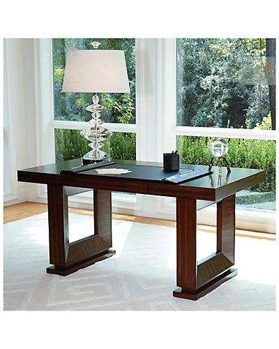 - Design details: Made of wood and hardwood. Exotic zebra wood veneer. Dark walnut color stain. Finished with lacquer and a hand rubbed wax finish. One oversized pencil drawer. Easy assembly required.