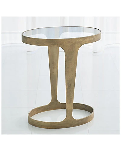 - Design details: The Oslo Accent Table features a clean, oval-shaped top that is repeated at the table’s base. Made of iron with a tempered glass top, the table is available in Bronze, Gold, or Iron finish.