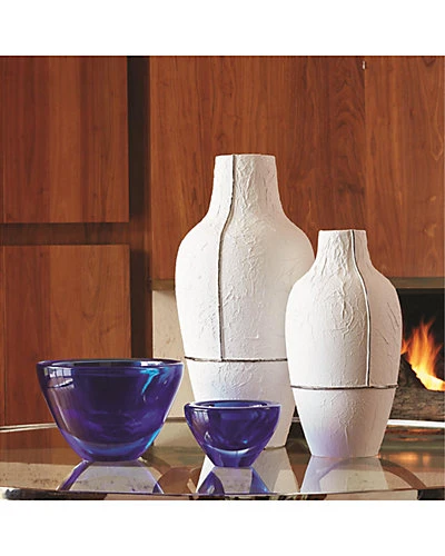 - Design details: Parchment Vase is molded matte white ceramic with a crinkled paper texture and electroplated silver seams.
