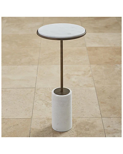 - Design details: A huge block of white marble is drilled out to produce a cylindrical shaft or core of solid marble to create the base for this beautiful table. These ‘cored’ bases are left in a rather unpolished state to contrast with the smoothness of the round tops. The stem and rim holding the marble are made of solid brass. These tables are available in two heights and offered in two finishes: Bronze or nickel plated solid brass. Perfect side tables (often referred to a drink tables) made in India are the results of this effort.