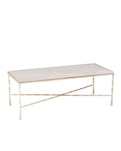 - Design details: Individual iron spikes are forged together to create the Spike Cocktail Table. White marble top. Available in antique nickel or antique brass finishes.