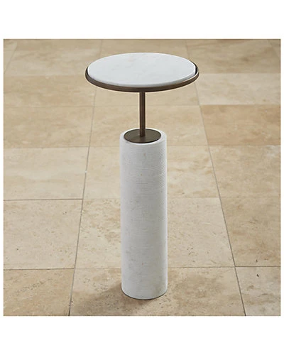 - Design details: A huge block of white marble is drilled out to produce a cylindrical shaft or core of solid marble to create the base for this beautiful table. These ‘cored’ bases are left in a rather unpolished state to contrast with the smoothness of the round tops. The stem and rim holding the marble are made of solid brass. These tables are available in two heights and offered in two finishes: Bronze or nickel plated solid brass. Perfect side tables (often referred to a drink tables) made in India are the results of this effort.
